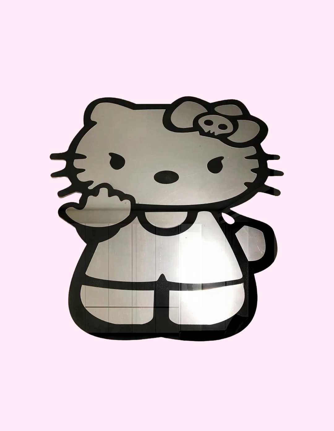 Ce miroir est fabriqué avec de l'acrylique dur de 1/8" sur la partie sérigraphiée et de l'acrylique dur de 1/4" sur le support.